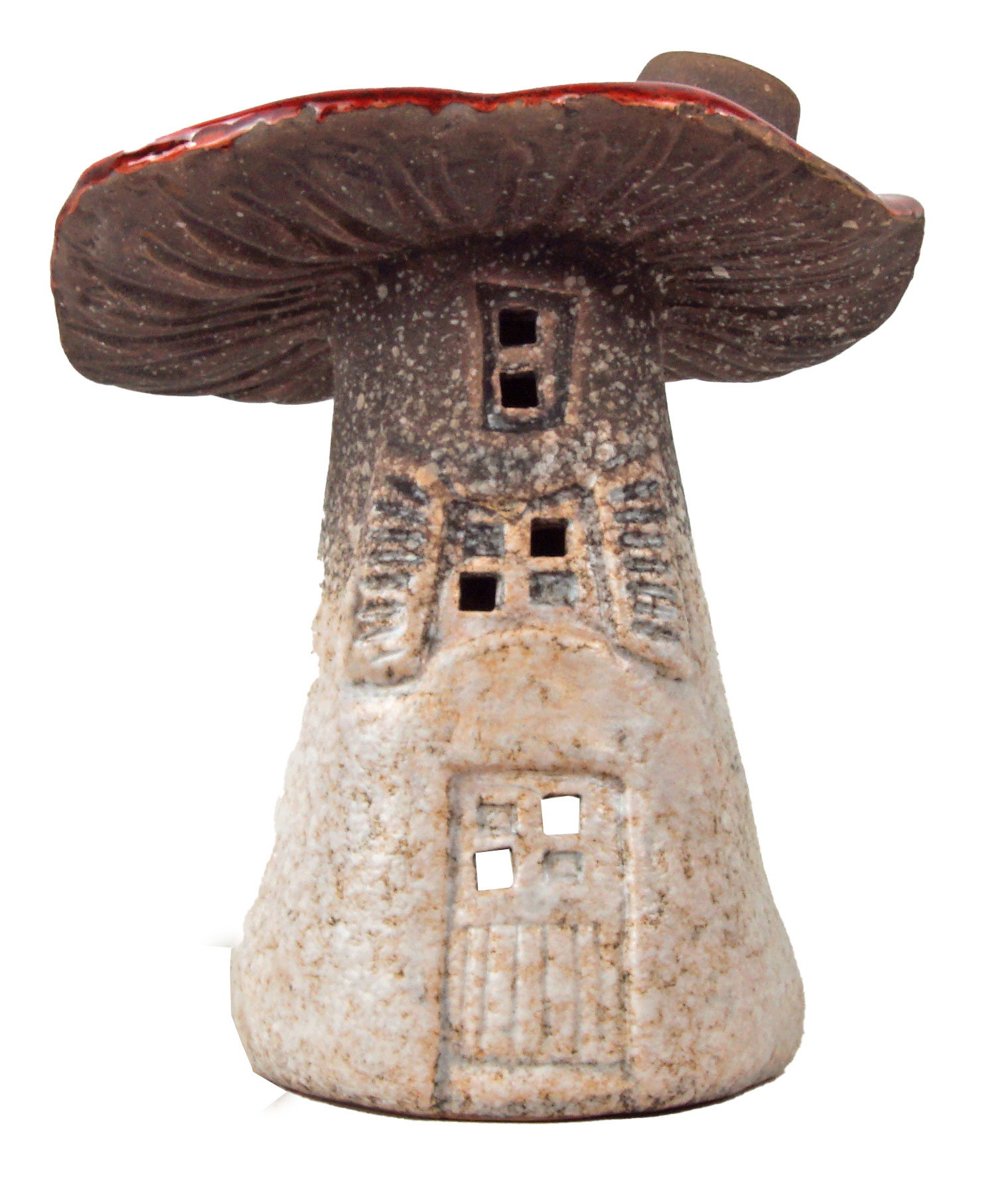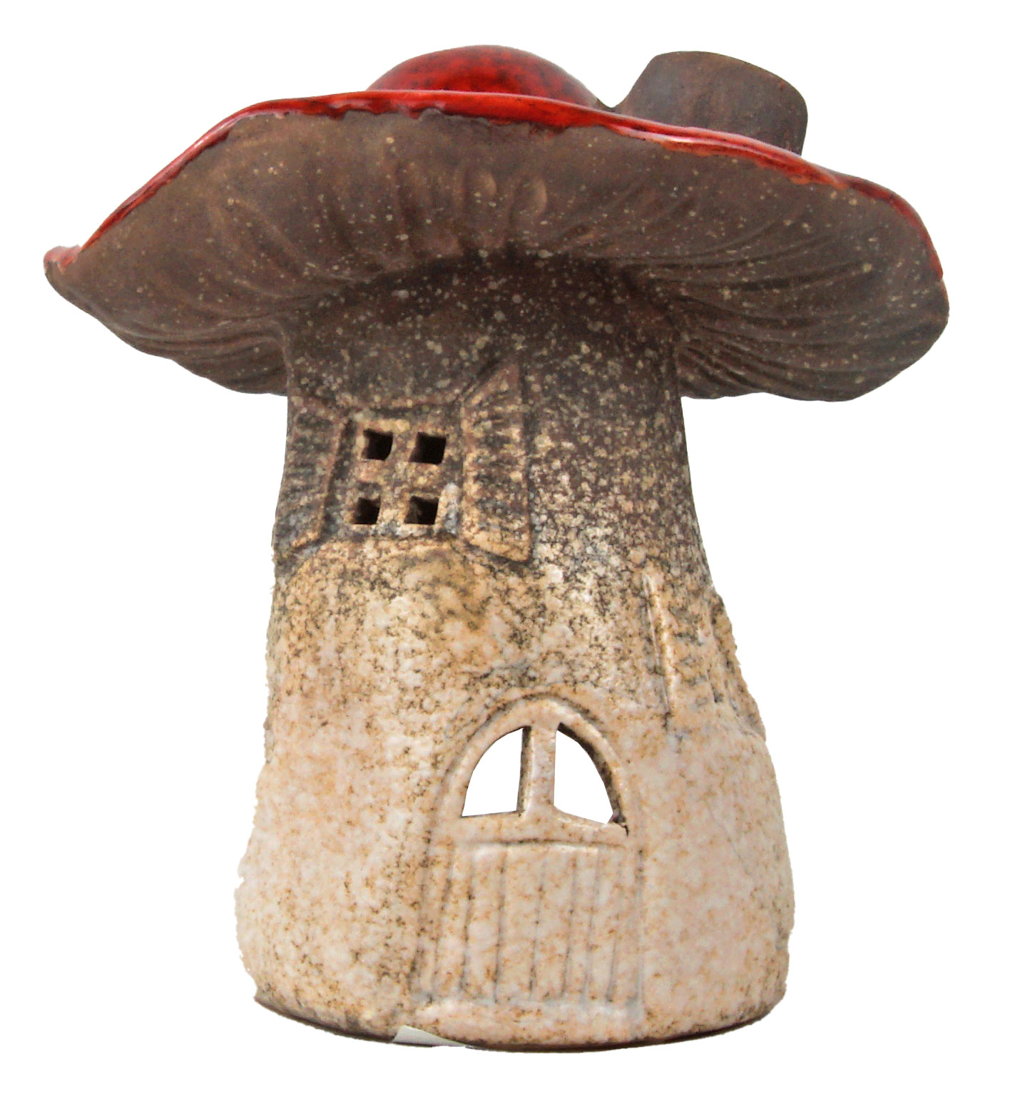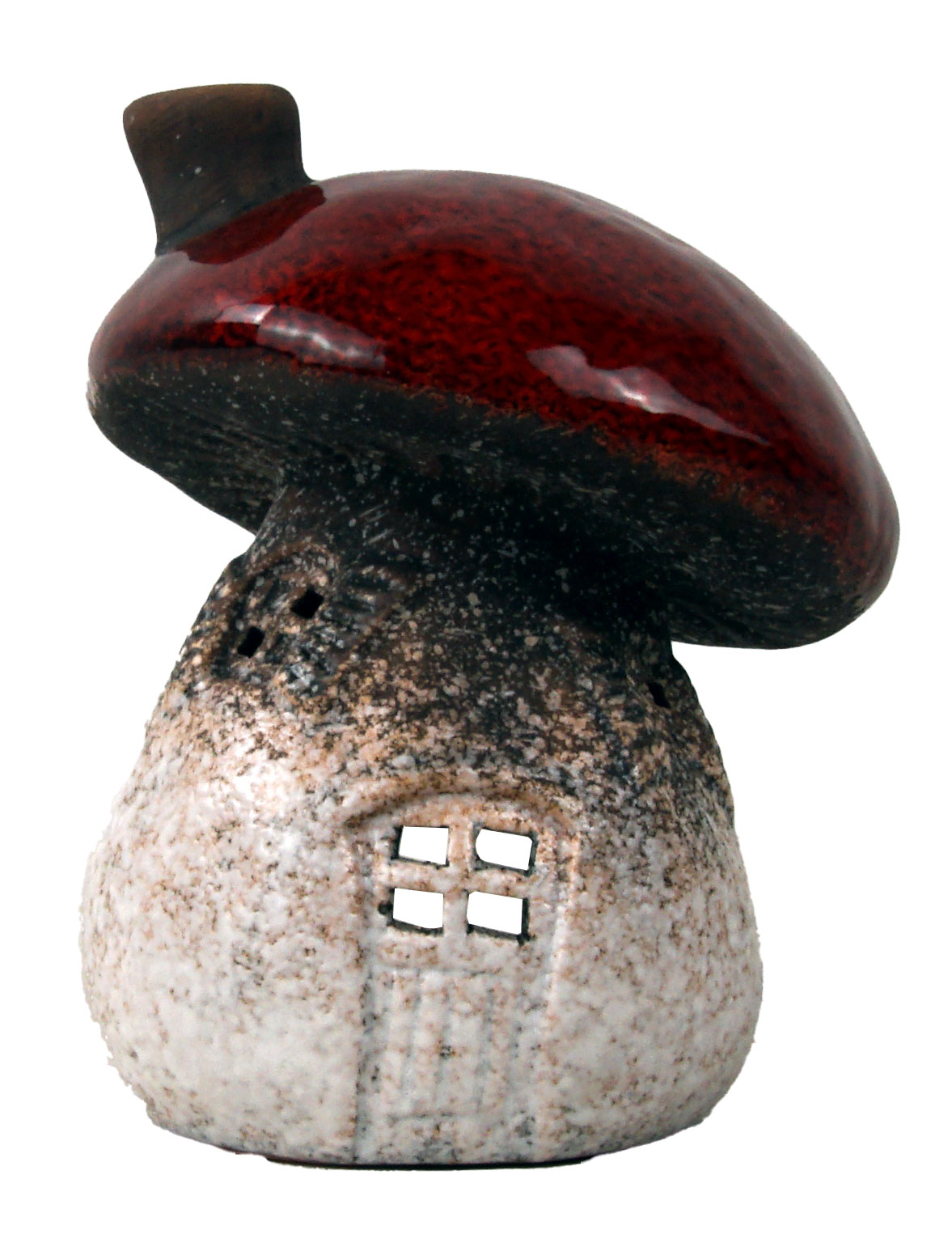 Keramik Windlicht „Pilzhaus“ – 3er Set Deko mit rotem Dach