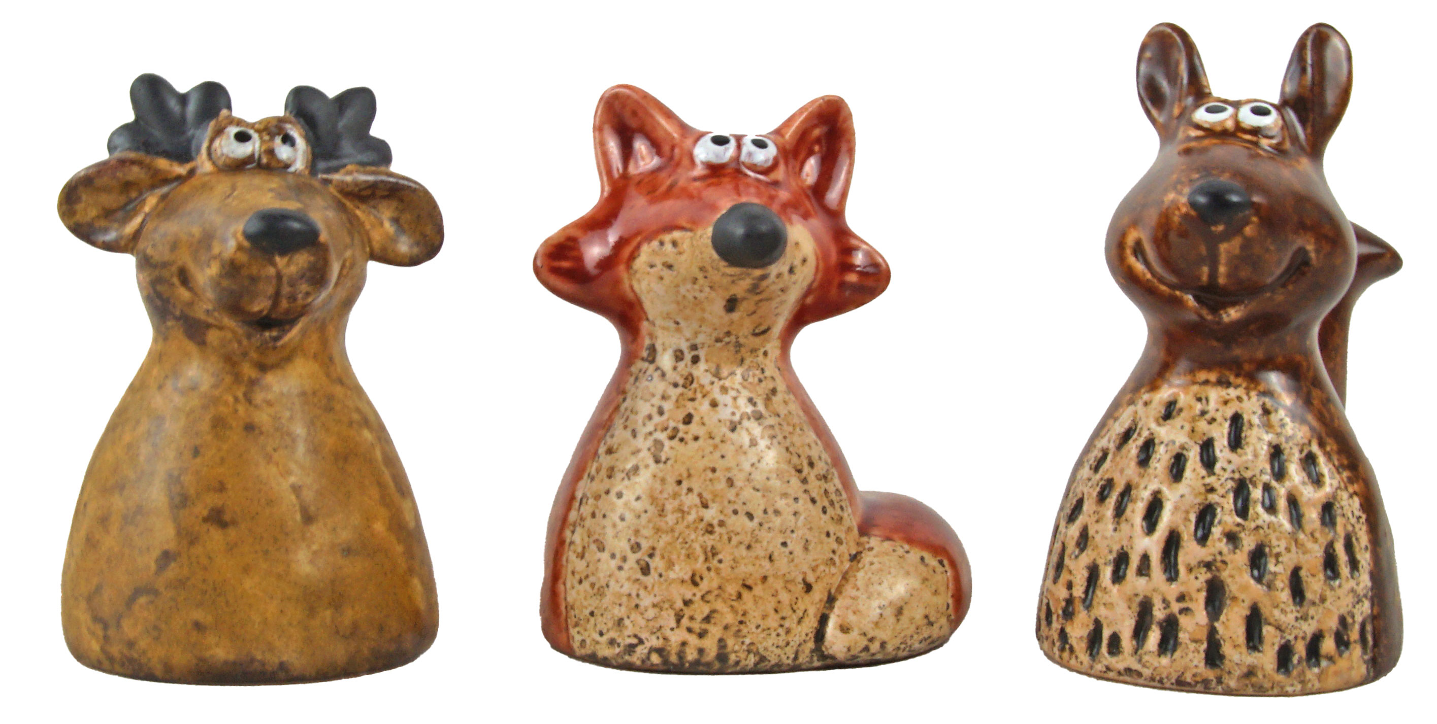 Die drei Waldbewohner – ein freundlicher Hirsch, ein schelmischer Fuchs und ein flinkes Eichhörnchen – stehen symbolisch für die Ruhe, Ursprünglichkeit und den Zauber der Natur. Mit ihren verspielten Proportionen, großen Kulleraugen und charakterstarken Gesichtsausdrücken verleihen sie jedem Raum eine besondere Note – humorvoll, stilvoll und absolut einzigartig.