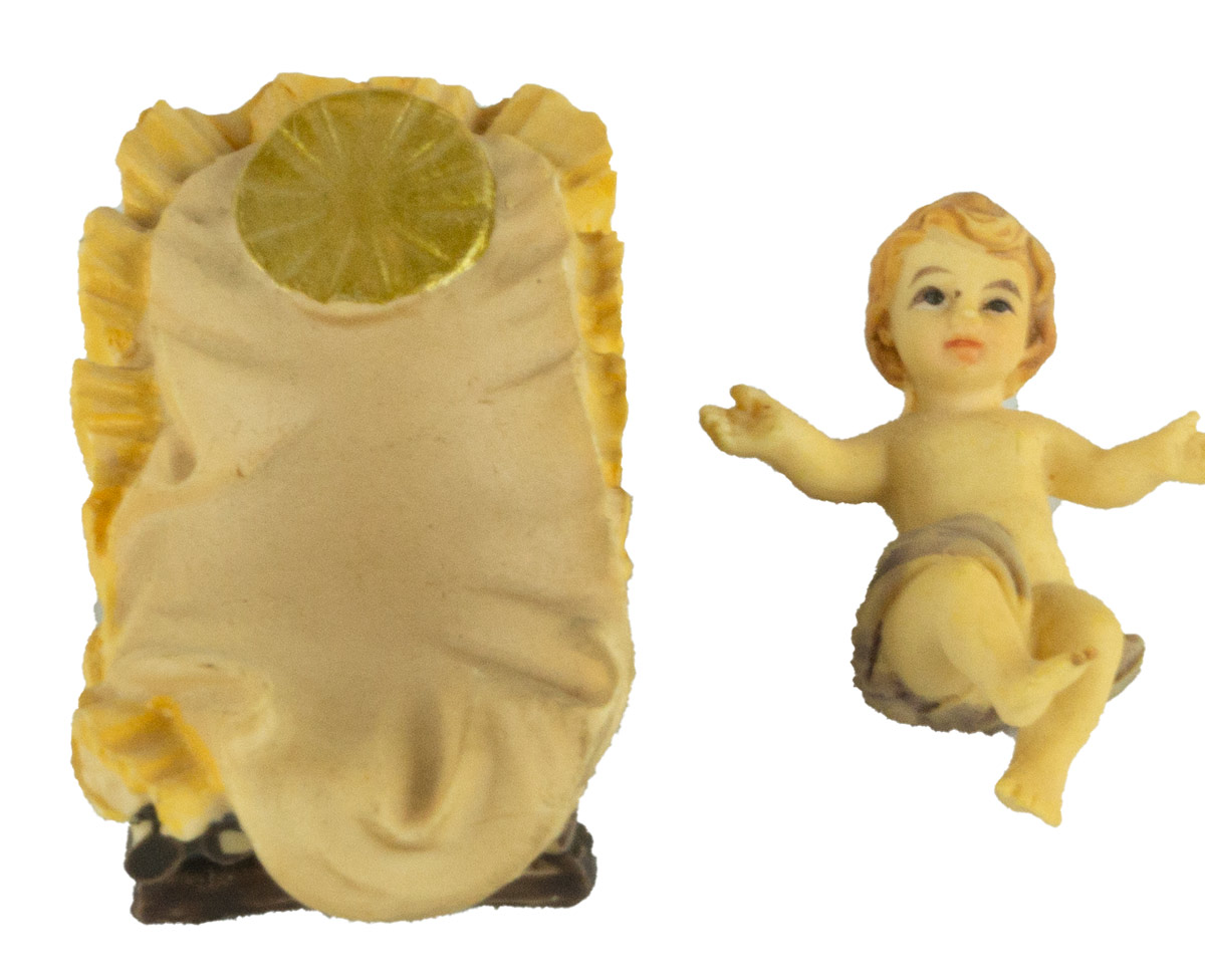 Unsere kleine, aber feine Weihnachtskrippe Raitenberg passt auch in die kleinste Wohnung. Obwohl der Krippenstall sehr klein ist, findet die heilige Familie ausreichend Platz. Die Figuren werden durch eine Stalllaterne (3,5 Volt) von oben beleuchtet und in ein angenehmes Licht gehüllt. Zum Betrieb von Laterne und Feuer benötigen Sie einen Beleuchtungstrafo. Bitte wenn nicht vorhanden dazu bestellen. Die gesamte Krippe steht auf einer massiven Holzplatte und ist liebevoll mit Moos, Heu und Steinen dekoriert und mithilfe der Krippenfiguren wird die rustikale Szenerie zum Leben erweckt.
