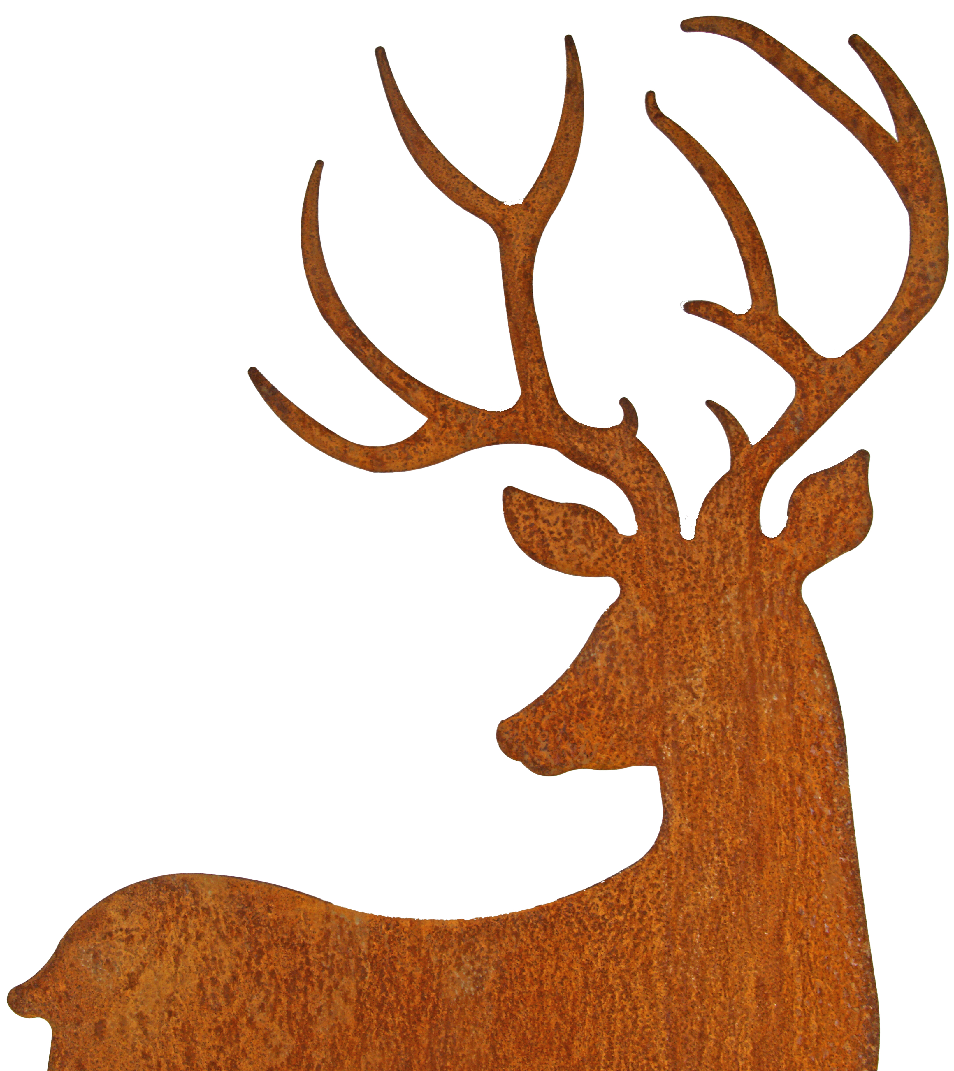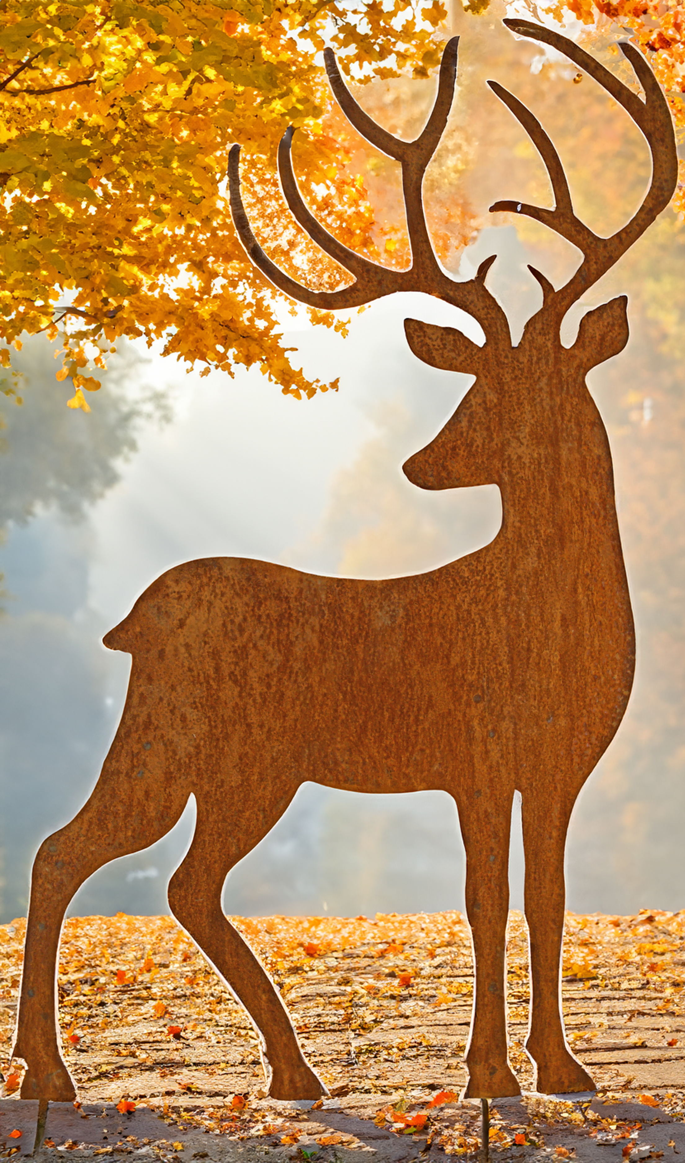 Jeder Blick auf den filigran gearbeiteten Hirsch erinnert an ruhige Waldspaziergänge, an klare Wintermorgen und an die Schönheit wilder Landschaften. Durch die warme Rostfarbe fügt er sich harmonisch in jede Umgebung ein – ob romantisch zwischen Rosen, modern im Kiesbeet oder als Blickfang auf der Terrasse.