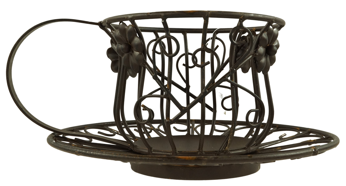 Unsere wunderschöne Pflanztasse eigenet sich ideal zum dekorieren für innen und außen. Die mit Ornamenten verzierte Tasse aus Metall kann wunderbar mit Blumen bepflanzt werden.