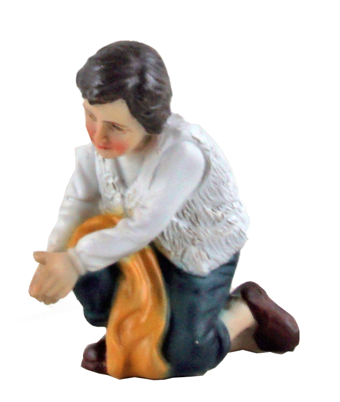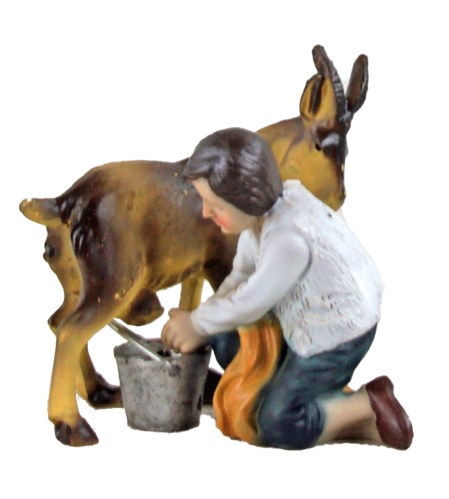 In der Weihnachtskrippe fügt sich diese Figur harmonisch zwischen Hirten, Tieren und Engeln ein und erinnert daran, dass die Geburt Christi nicht nur ein himmlisches, sondern auch ein menschliches Ereignis war – mitten im Leben, inmitten einfacher Menschen, die mit Herz und Hand wirken.